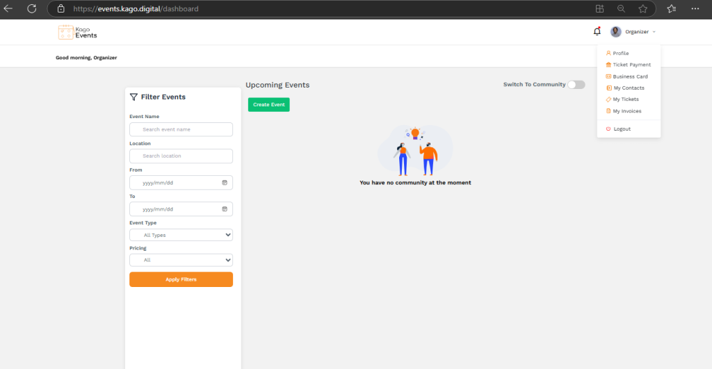 Visit the Kago Event Application Website