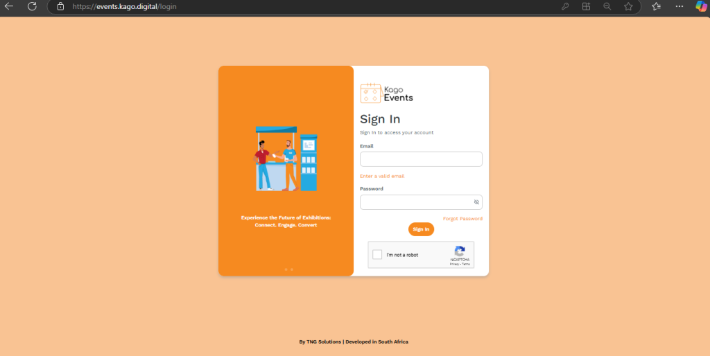 - Click Login to access your Kago Events dashboard.